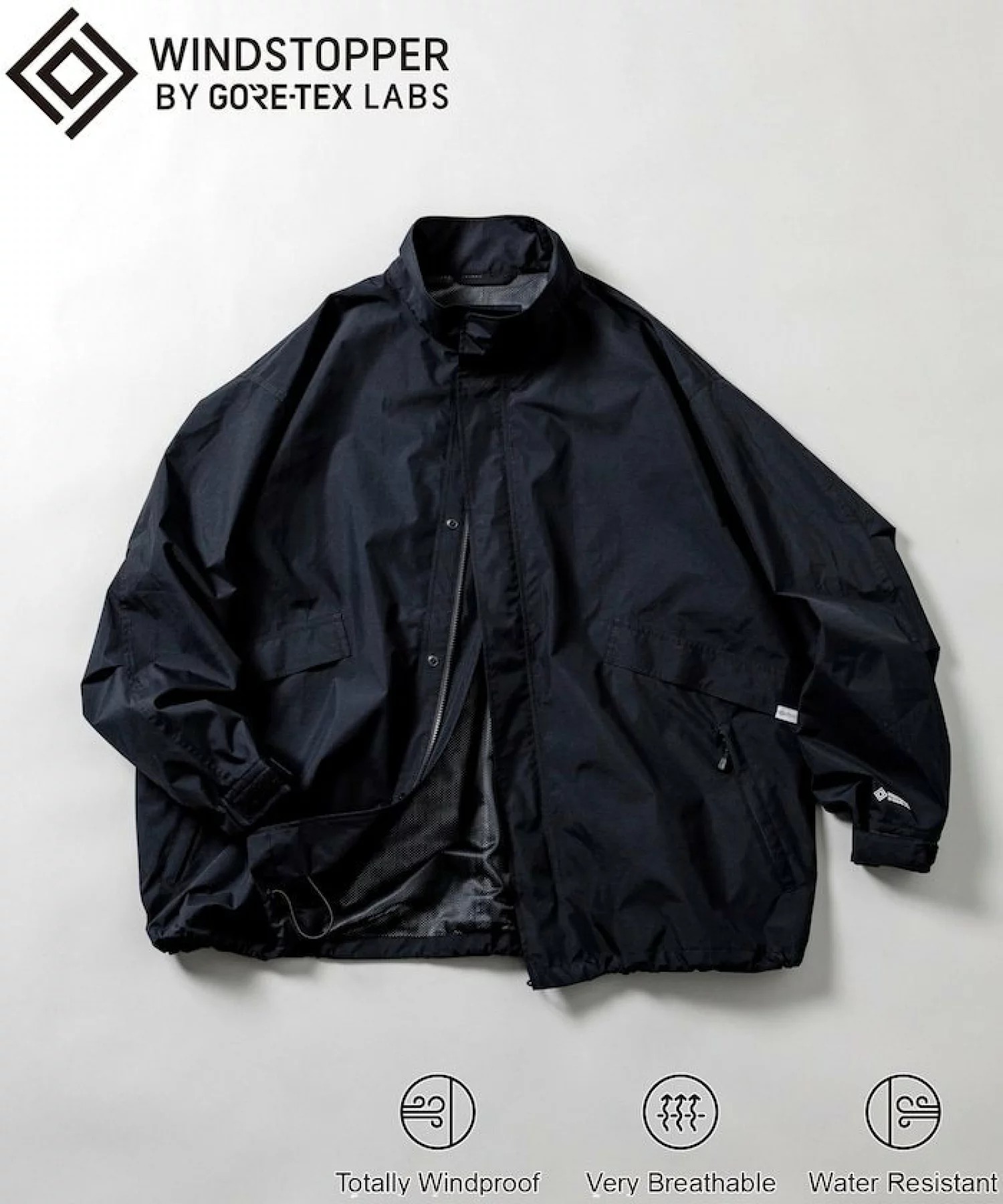 最大の特徴は、防風性と透湿性に優れた「GORE-TEX WINDSTOPPER」素材を採用している点です。冷たい風をシャットアウトしながら、内部の蒸れを軽減して快適な着心地をキープ。タウンユースはもちろん、アウトドアシーンでも頼れる機能性を備えています。