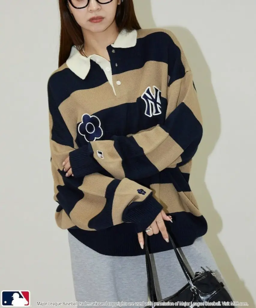 MLB(メジャーリーグベースボール)とMARY QUANT(マリークヮント)の異色コラボレーションによって誕生した「KNIT RUGBY SHIRT」。スポーツとファッション、そしてカルチャーを融合させたこの特別な一着は、2025年秋冬シーズンの注目アイテムとして話題を集めています。ラグビーシャツというスポーツ由来のデザインに、MARY QUANTらしい遊び心とフェミニンさが加わり、他にはない独自の魅力を放っています。